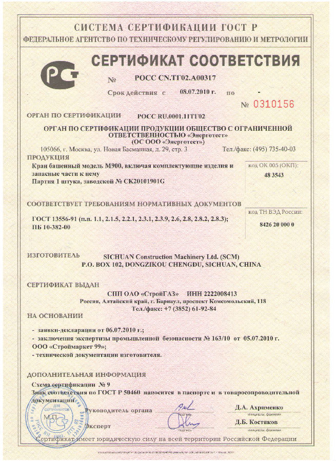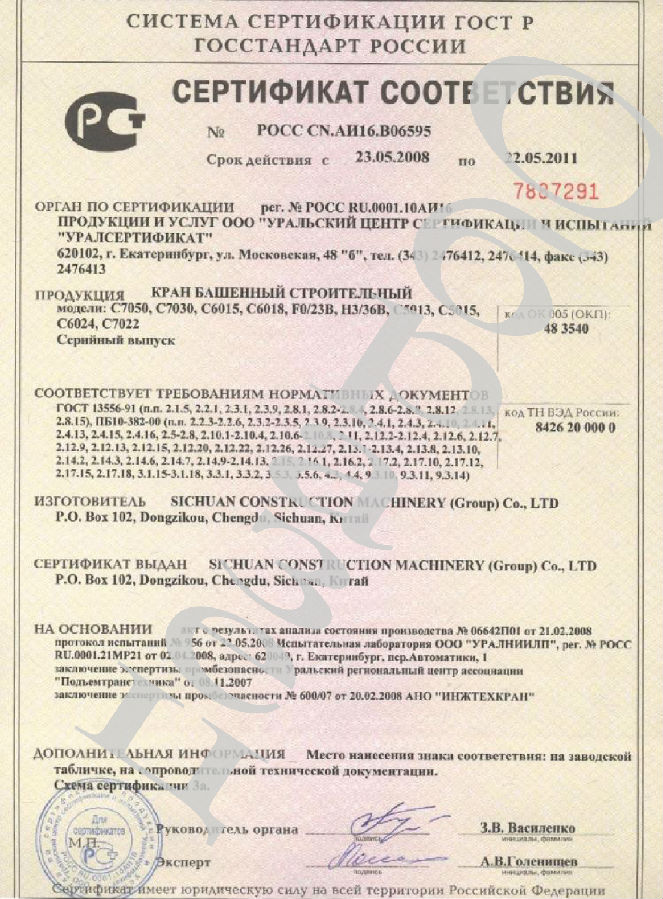C7050塔機被法國科技質量監(jiān)督評價委員會推薦為高質量產品;C7050塔機被中國國際貿易促進委員會列為中國進入WTO推薦產品。