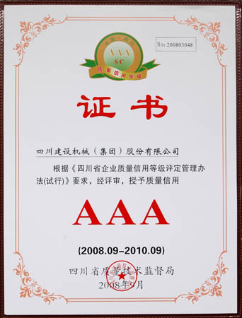 1月 四川省質量技術監(jiān)督局授予質量信用AAA證書;