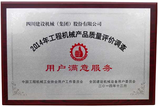2014年全國工程機械產(chǎn)品質(zhì)量評價調(diào)查,四川建設(shè)機械(集團)股份有限公司因產(chǎn)品和服務(wù),被中國工程機械工業(yè)協(xié)會用戶工作委員會、全國建設(shè)機械設(shè)備用戶委員會評為“全國塔機用戶滿意十強”、”用戶滿意服務(wù)”企業(yè);公司生產(chǎn)的C5013、C5510、C5513、C6010、C6013、C7030塔式起重機以及SC200/200W施工升降機被評為“全國用戶滿意產(chǎn)品”。1989年至今川建已連續(xù)十次獲得全國用戶滿意獎,在行業(yè)內(nèi)取得了較高榮譽。